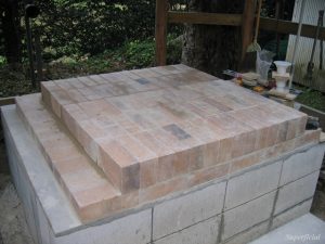 とりあえず、左右にフツーのレンガを2段積みまして