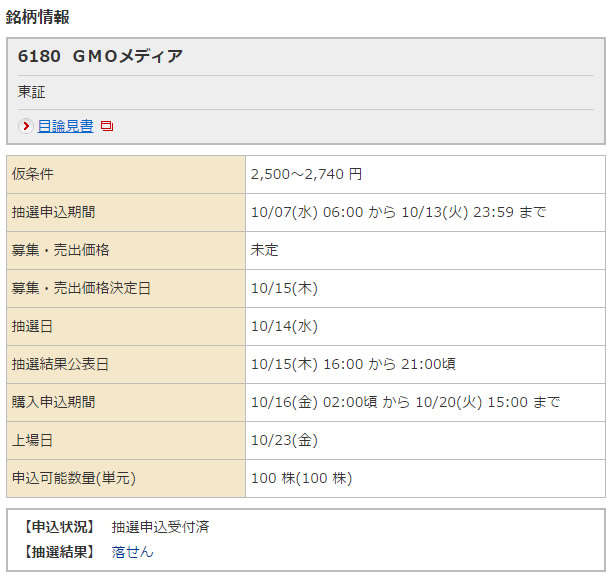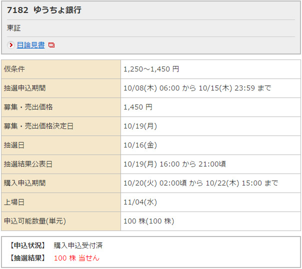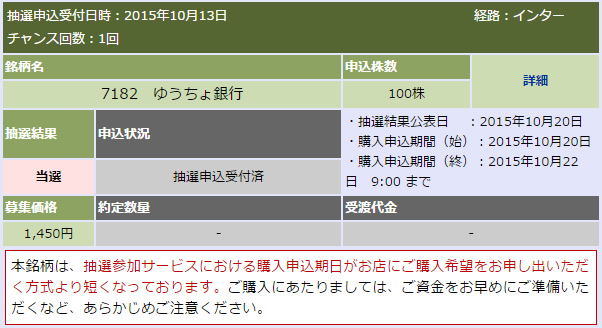 初めてIPOに当選しました