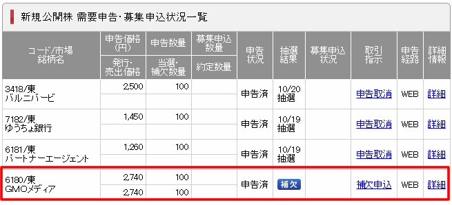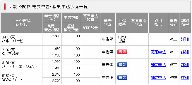 SBI証券:落選